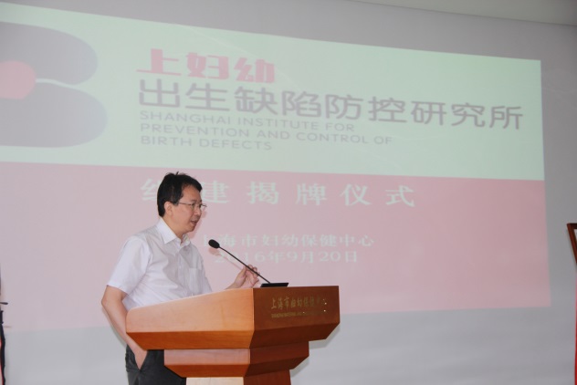 王磐石副主任在讲话中称“上妇幼出生缺陷防控研究所”的组建,标志上妇幼在出生缺陷方面又有新的起点,同时感谢贺院士带领上妇幼,为公妇幼健康水平的不断提高,降低出生缺陷领域上所做出的贡献,并提出三点要求,一是要重视出生缺陷防控工作,既要立足“小家庭”更要着眼“广人群”,防控工作不仅是医疗行为,更是重要的政府公共卫生职能;二是要贯彻“全国卫生与健康会议”精神,以预防为主,把健康融入到各项工作。上妇幼出生缺陷防控研究所成立后,要不负上海水平和技术,加快引进更先进适宜技术,将出生缺陷检出率提高,真实、客观、全面反映出生缺陷现状,研究出更有效的预防、控制以及治疗出生缺陷的各项干预措施,在出生缺陷方面凸显出精准医疗理念。三是这个研究所的建立,要以将上妇幼建设成为立足上海、辐射华东、服务全国和国内领先、国际知名的出生缺陷检测中心为愿景,充分发挥这个平台优势,同时也希望各级医疗机构今后能够积极利用这个平台铺开工作,寻求合作,共同促进。